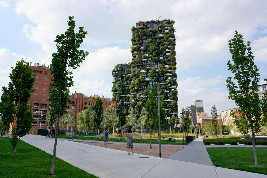 Canopy cover reduces surface temperatures. Green roofs insulate upper floors. Vegetated walls can soften harsh exposures in dense locations. Shaded pedestrian routes make walking realistic in warmer months instead of something residents avoid until sunset.